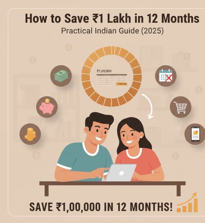 A simple and practical Indian guide to saving ₹1 lakh in 12 months. Includes monthly saving plan, daily habits, real-life stories, internal links, budgeting hacks, and step-by-step strategies.